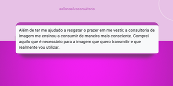 Com mais de 10 anos de experiência como Estilista, e 6 anos atuando como Consultora de Imagem, já tive a oportunidade de transformar a forma como centenas de clientes enxergam sua própria beleza e estilo.